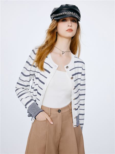 簡約直紋微短版飛鼠袖羊毛針織上衣
