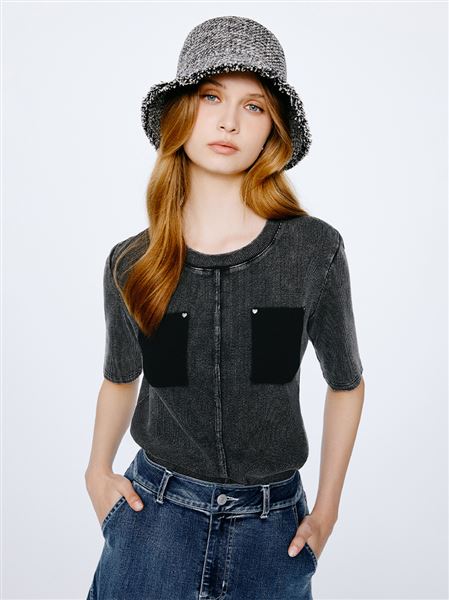挺版嫩彈反褶袖搖粒絨開衩針織上衣-灰
