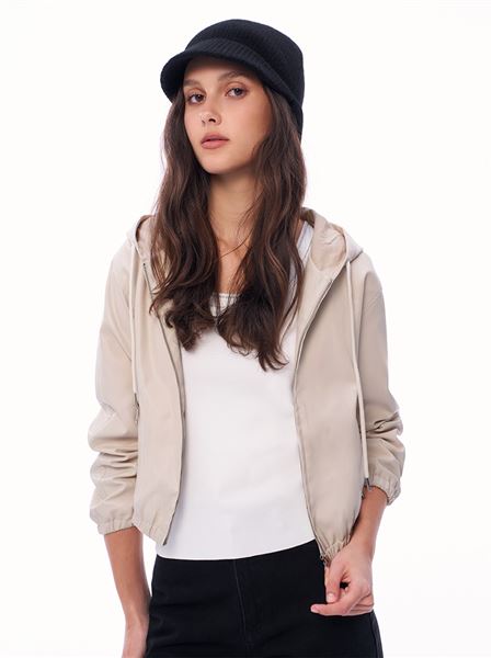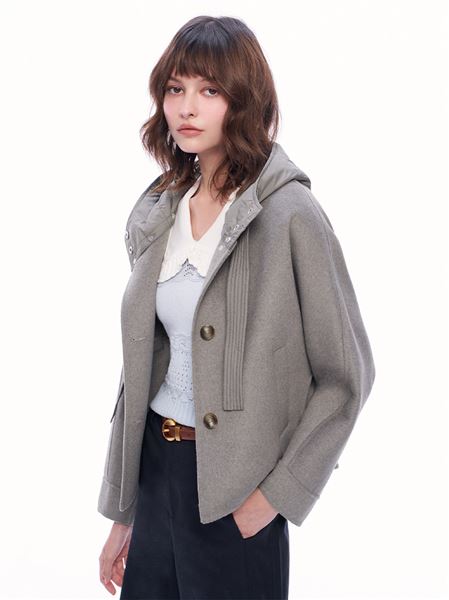 挺舒適空氣棉泡泡袖短版連帽外套-深灰