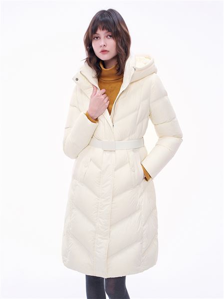 雙重禦寒磁吸釦鴨絨連帽外套-白
