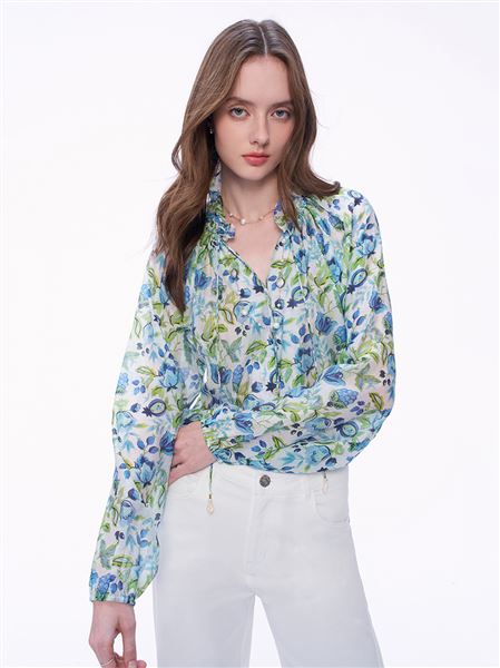海邊走走荷葉邊抽繩萊賽爾襯衫
