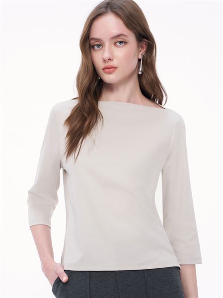 M+ | 雲感舒眠一字領莫代爾棉上衣-杏