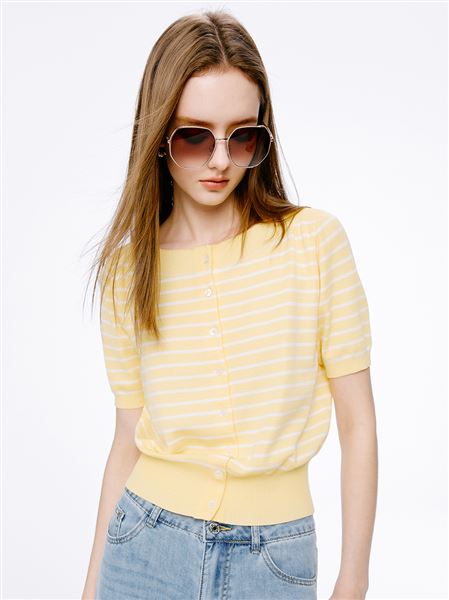 甜漾風彩桑蠶絲針織上衣外套-黃
