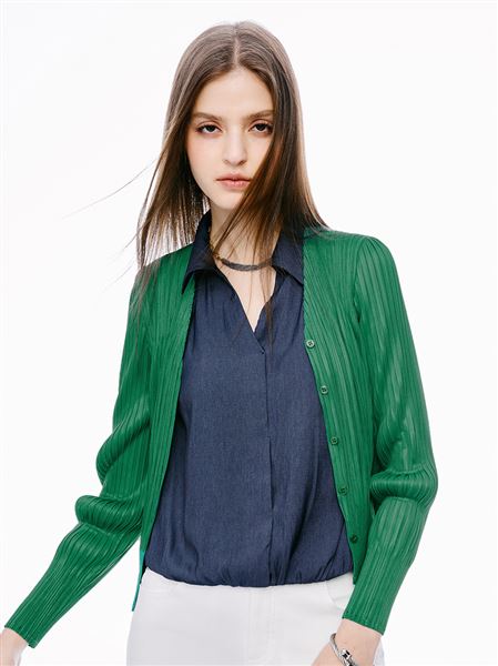 甜漾風彩桑蠶絲針織上衣外套-綠