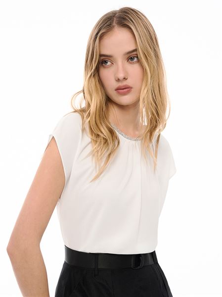 特級抗皺|輕奢小香風鍊飾雪紡無袖上衣-白