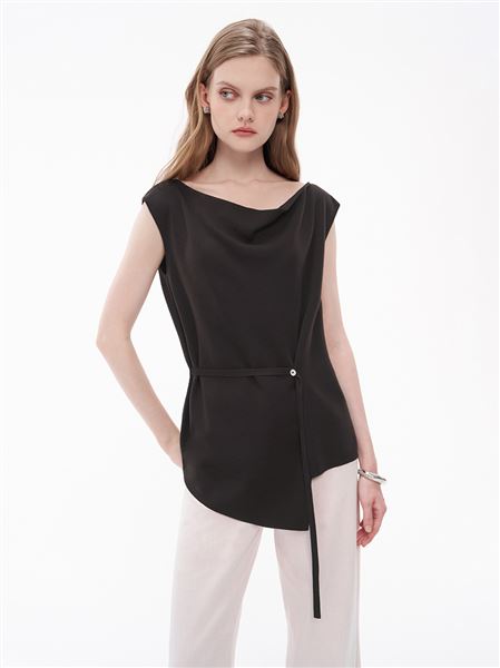 M+ | 絲綢光澤輕透銅氨纖維抽繩暗門襟襯衫