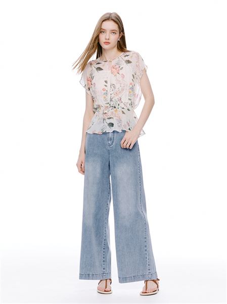 四季皆宜毛邊直筒牛仔寬褲-淺藍