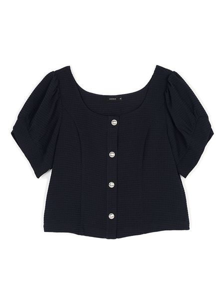 希臘神殿蕾絲刺繡泡泡袖上衣