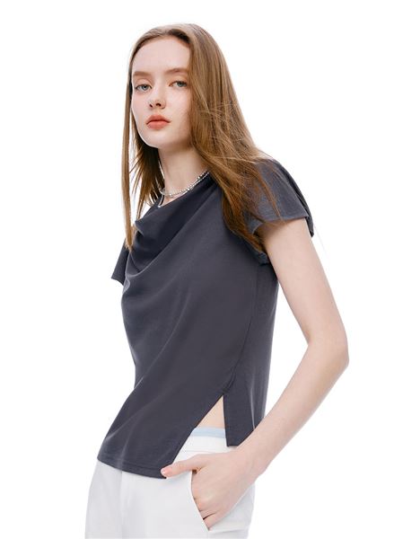 M+ | 簡約仿麻顯瘦零負擔蓋袖上衣-灰