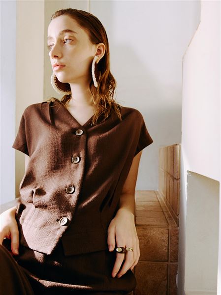 M+ | 簡約仿麻顯瘦零負擔蓋袖上衣-咖