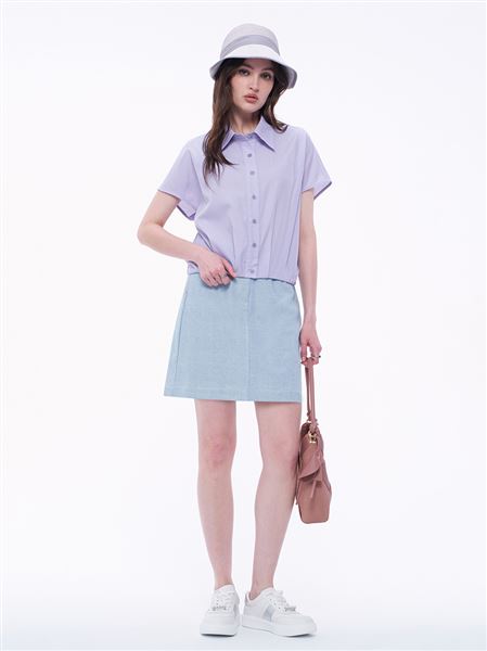隨性撞色冰爽絲小蓋袖上衣-黃