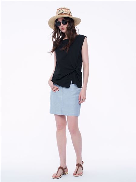 M+ | 自在節奏舒柔扭結設計感上衣-黑