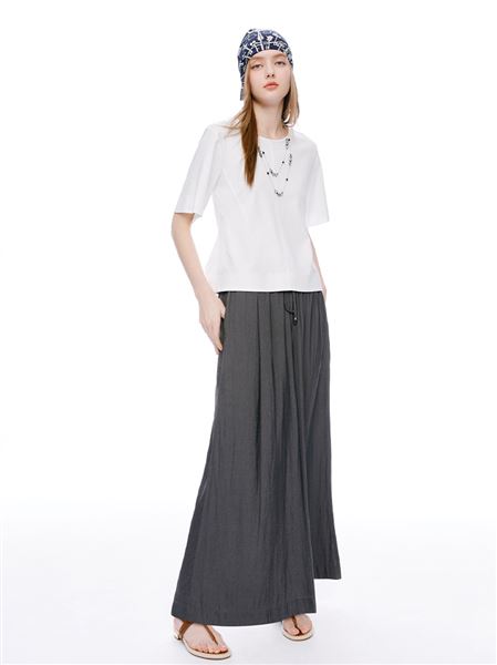M+ | 絲光空氣感立體抓褶寬褲-深灰