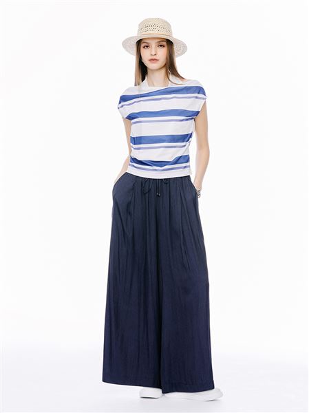 M+ | 絲光空氣感立體抓褶寬褲-深藍