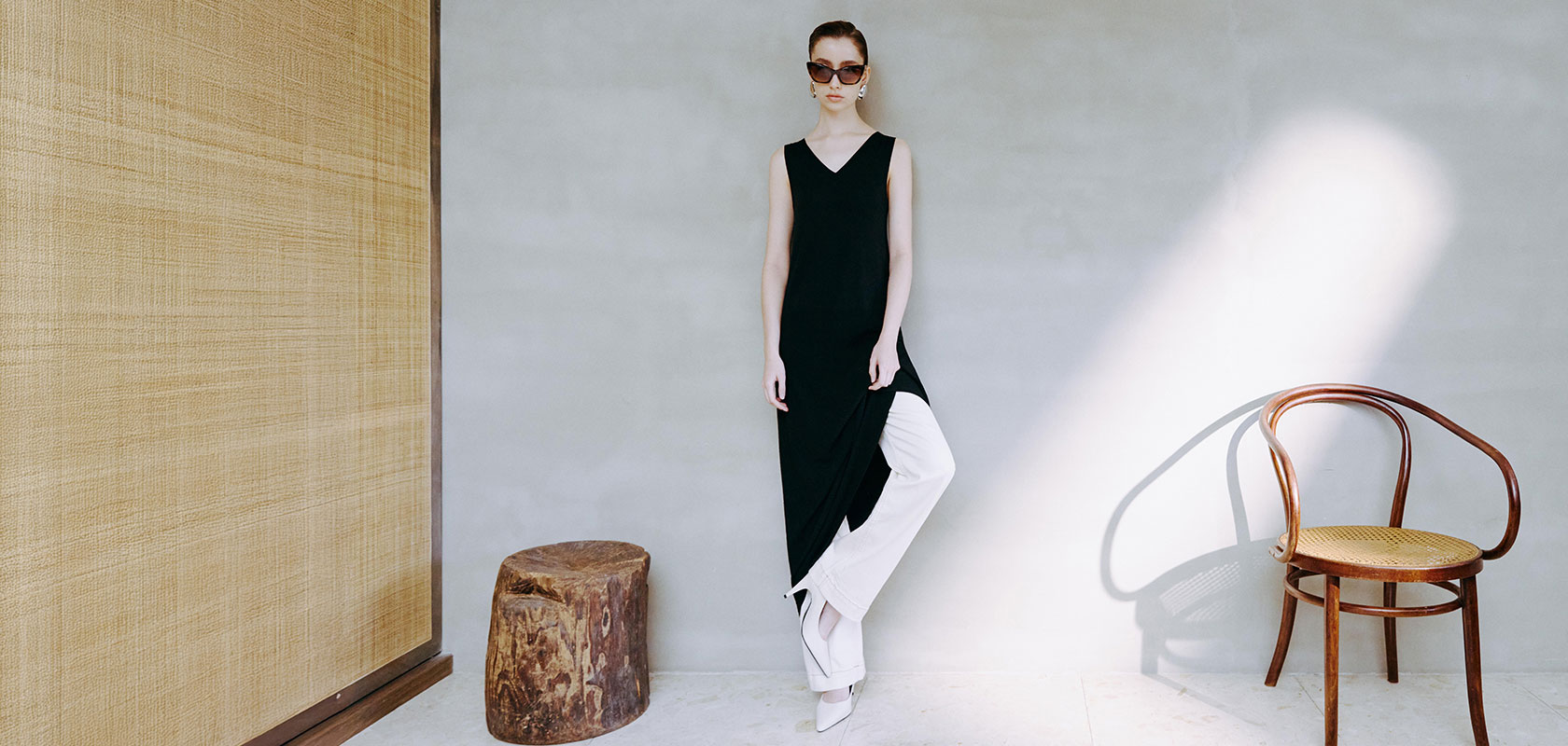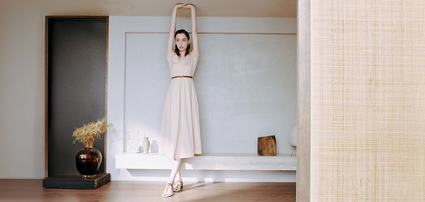 M+ | 俐落V領質感桑蠶絲針織洋裝