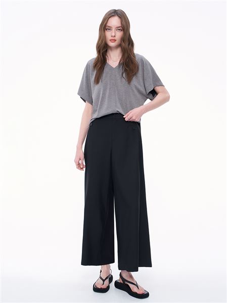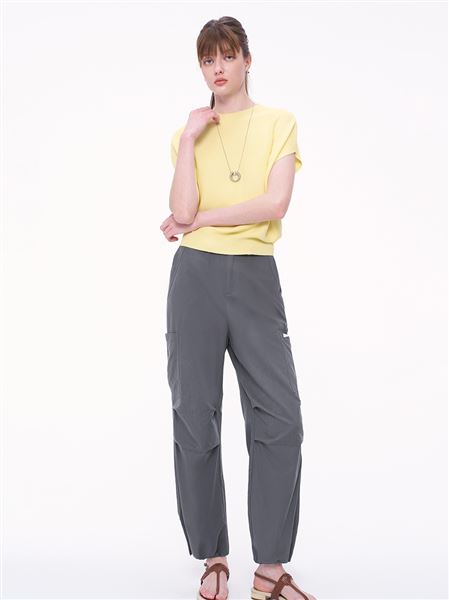 四季可穿車縫線廓形牛仔寬褲-卡其