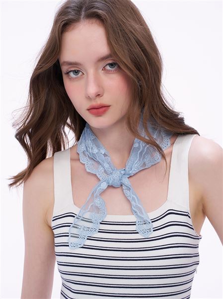 蔚藍私語花朵蕾絲多用三角巾-淺藍