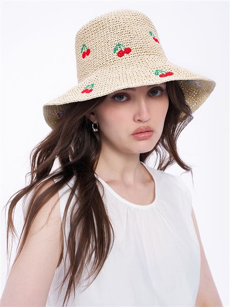 微甜旅遊櫻桃刺繡編織遮陽草帽