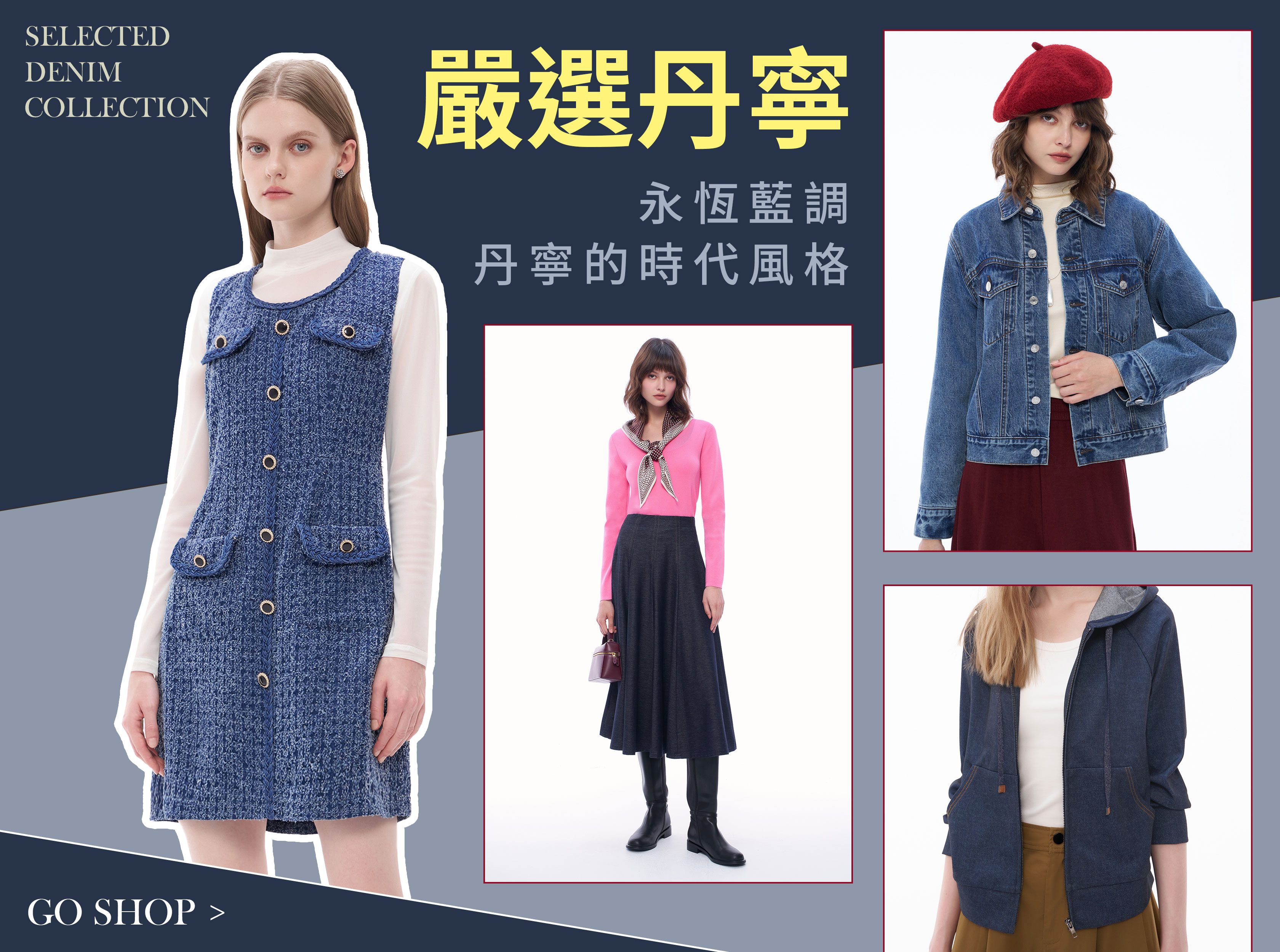 丹寧小香麻花紋編織玫瑰金線圈釦洋裝