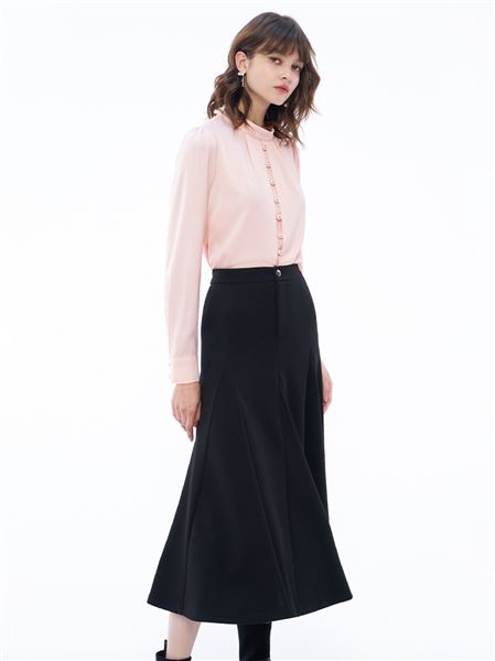 M+ | 美型飄逸仿麂皮壓褶A字裙