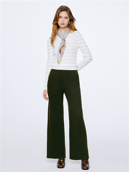 俐落感M字釦羊毛直筒寬褲-咖啡