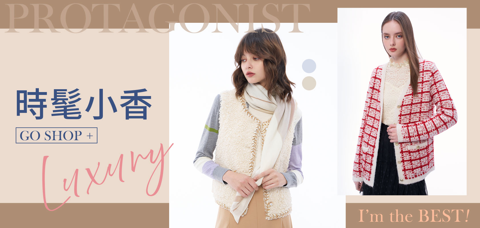 點綴編織小香風QQ毛針織背心-卡其