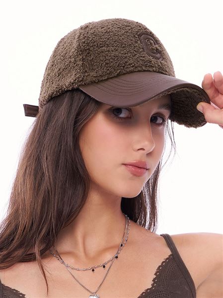 簡約字母泰迪絨日常小臉棒球帽-咖啡