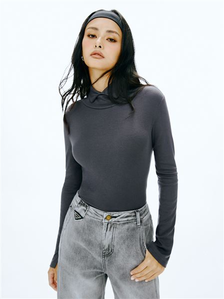 M+ | 萊賽爾高領開衩羊毛上衣-深灰