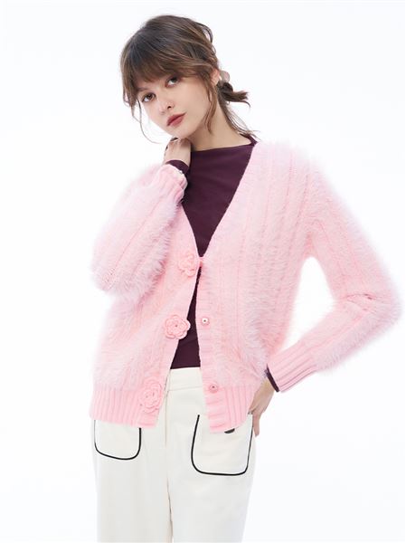 少女感網紗蝴蝶結羊毛針織上衣-粉