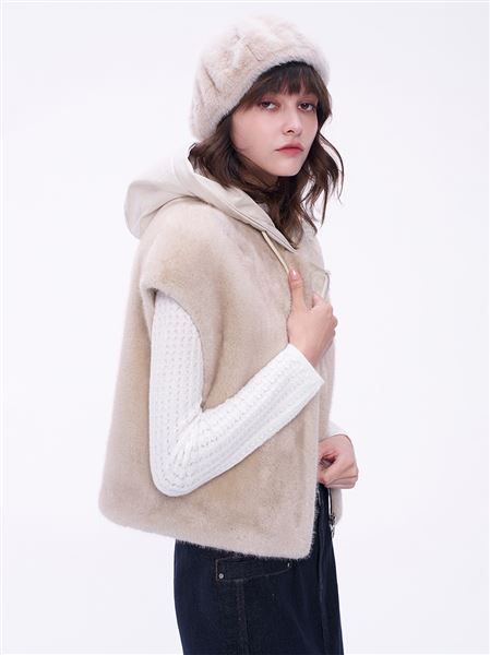 泰迪QQ毛氣球感連帽鋪棉背心外套-米白