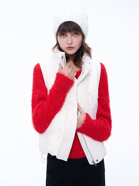 優雅珍珠點綴高領鴨絨背心